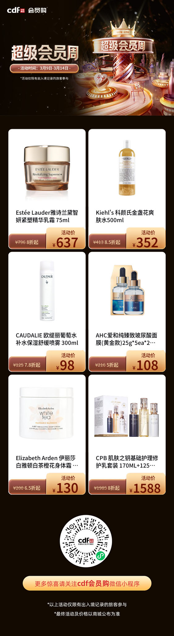 注:1.各平台注册及下单所需信息:cdf会员购邀请码SJTV 以上邀请码/推荐码长久有效。 2.搜索结果仅供大家参考,最终价格请以官方平台支付价为准。仅限有出入境或离岛记录的旅客参与。 3.本平台目前支持cdf会员购、cdf中免海南会员优选、中免日上、中免日上跨境购、海旅免税会员购、CNSC国免会员购、GDF会员购、王府井全球购、王府井免税海南会员购、珠海免税mall、泰海淘等免税直邮平台及cdf中免海南离岛免税、CNSC国免离岛免税、深免海南离岛免税、海旅免税城、GDF免税城、王府井海南免税、cdf澳门上葡京、泰国王权免税、香港DFS免税店、澳门DFS免税店、日本成田机场免税店、duty zero by cdf、新加坡樟宜机场免税店、韩国现代百货免税店、大阪关西机场等免税预订平台的商品价格查询及对比,支持化妆品日期批号查询,提供各免税平台购物入口,提供松本清、鹤羽药妆、札幌药妆、BicCamera、唐吉诃德等优惠券领取入口,免税购物从亿点免税开始。