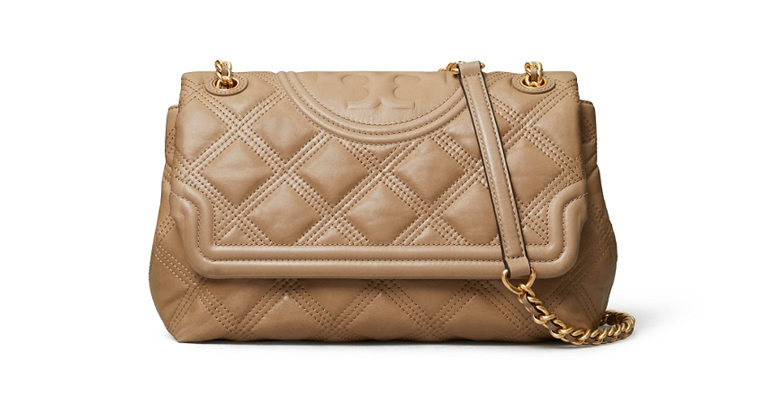 TORY BURCH FLEMING 釉面软皮肩背包 釉面皮革 杏仁色