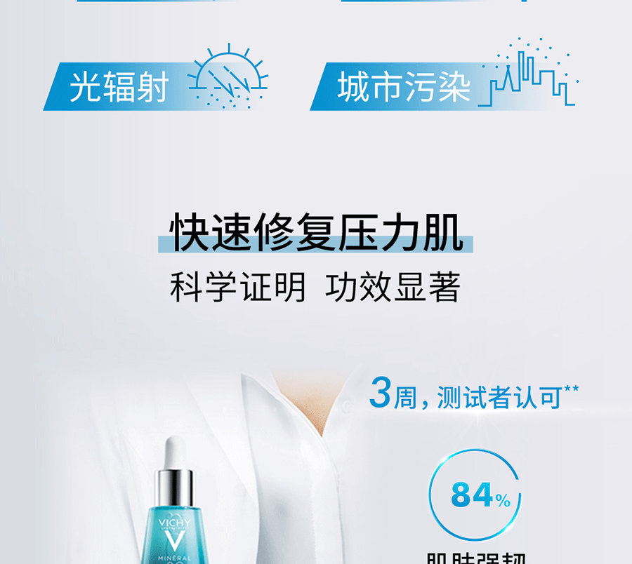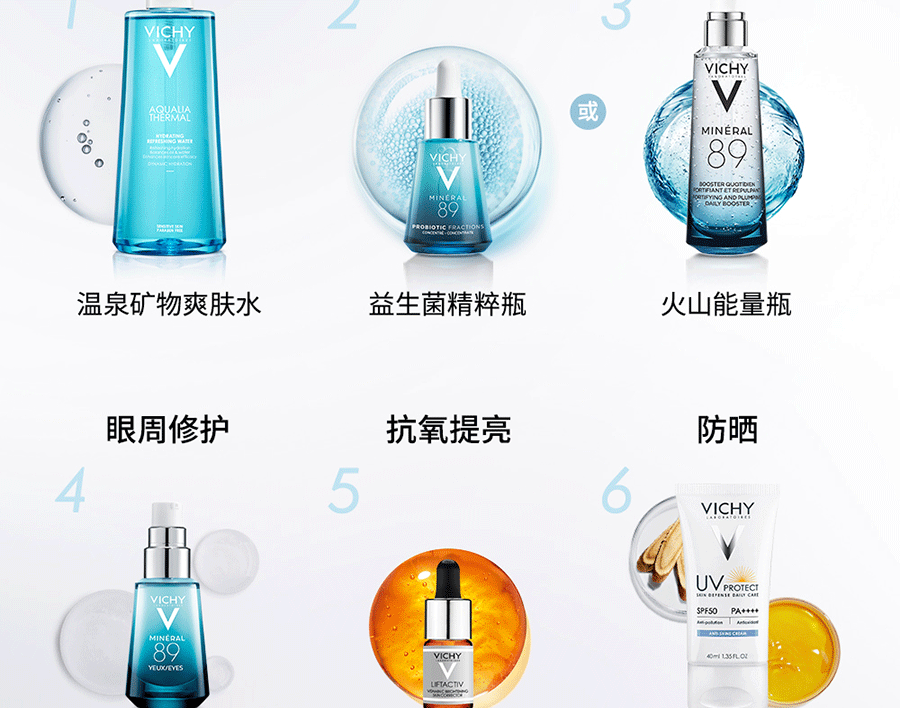 薇姿–医学护肤领导品牌,源自法国。承诺高效、安全、愉悦。亚洲敏感性肌肤亦适用。源自1931年由医师创办以来,薇姿始终帮助全球各种年龄、各种肤质的女性维持美丽。薇姿产品秉持“ 高效、安全、愉悦” 的标准,实践对健康和美丽的承诺。高效–经每年超过3000次皮肤测试验证,经过5个大洲严格皮肤测试,多项专利支持。安全–通过亚洲敏感性肌肤测试,提供不含尼泊金脂类防腐剂配方供选。愉悦–富含薇姿温泉水,愉悦亲肤的产品质地。薇姿温泉水富含15种有益矿物质,经17项临床测试证明其功效:舒缓、强韧、修护皮肤天然机能。天然纯净,经亚洲敏感肌肤测试。薇姿带来“ 鲜活” 强韧保湿,即使敏感肌肤也能畅享。薇姿全球目前拥有90000个销售点,遍布60个国家,并由过皮肤科专业推荐。