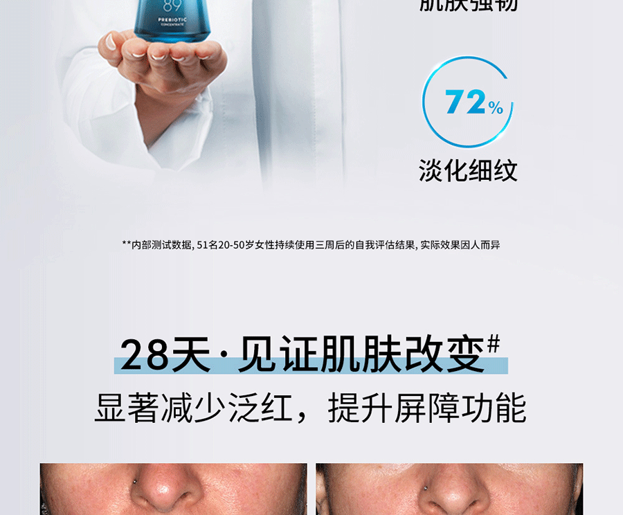 4.使用化妆品过程中出现红斑,红肿,痒,刺激等异常情况,请立即停止使用该产品并向皮肤科医生进行相关咨询。
