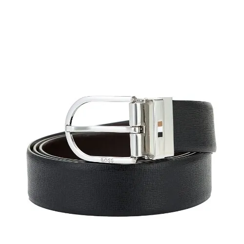 MONTBLANC 万宝龙 马蹄形闪亮镀钯针扣皮带 蓝/黑色