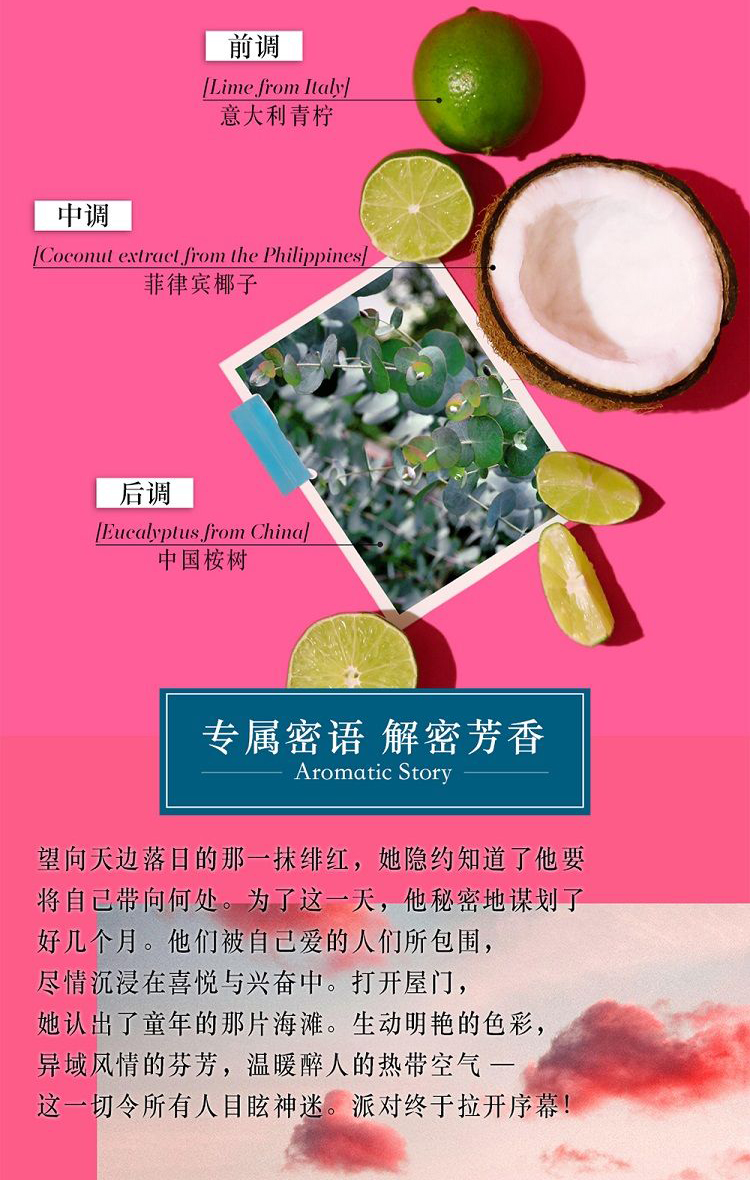 海风青柠,激越青柠与幽幽椰香的完美组合香水。