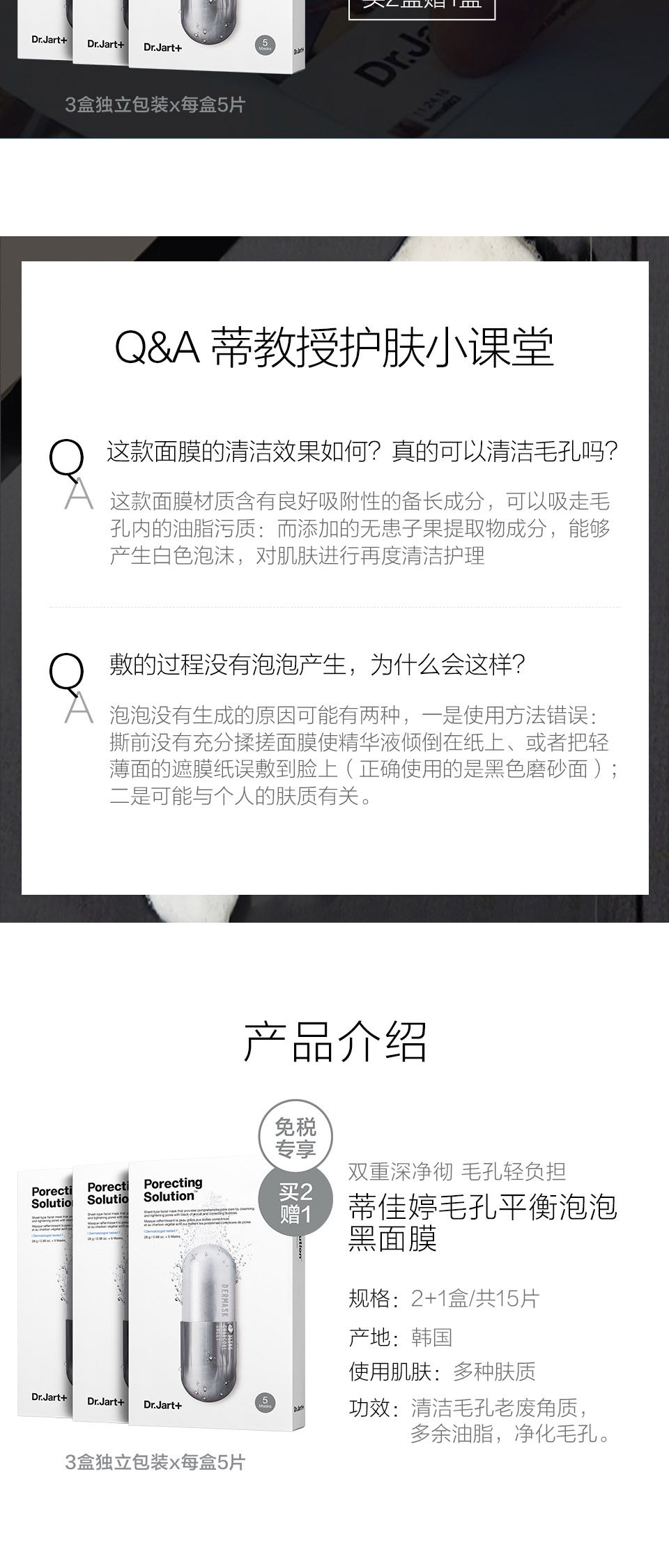 Dr.Jart+蒂佳婷毛孔平衡泡泡黑面膜 套装5PCS*3