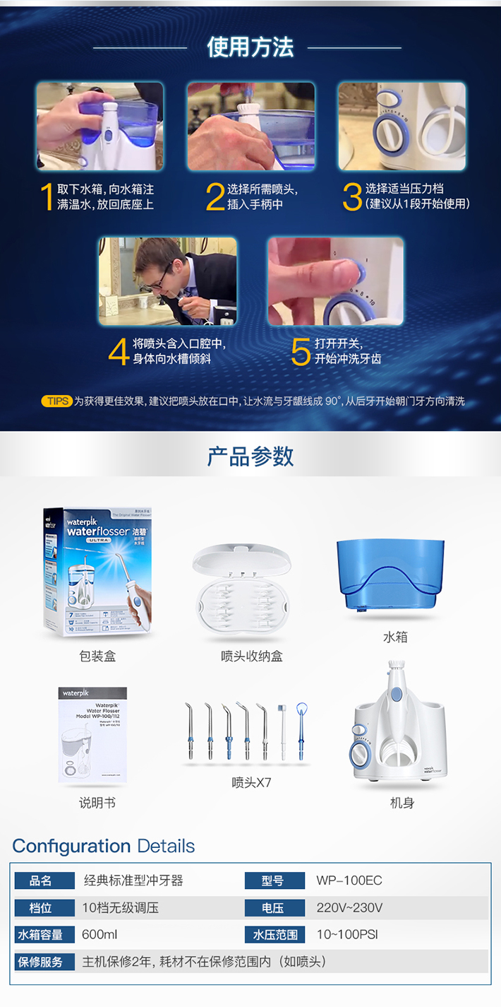 产品型号 | WP-100EC | 品牌名称 | Waterpik® 洁碧 |