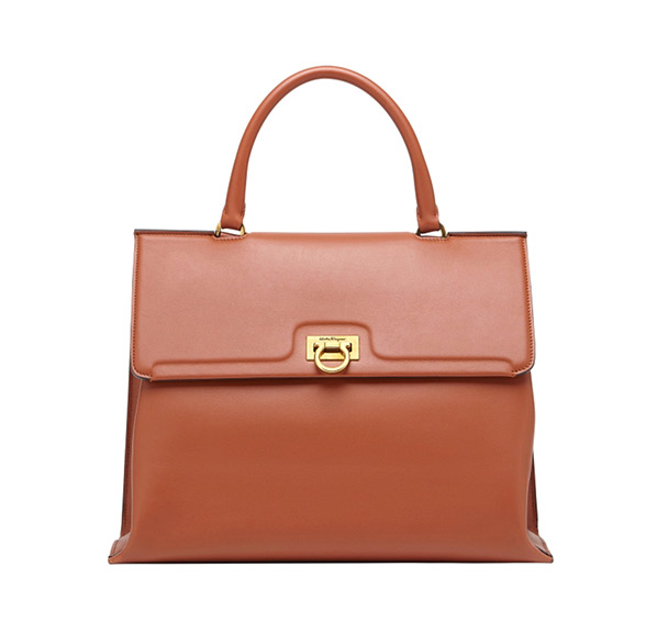 Salvatore Ferragamo/菲拉格慕 TRIFOLIO中号手提袋 牛皮革 棕色