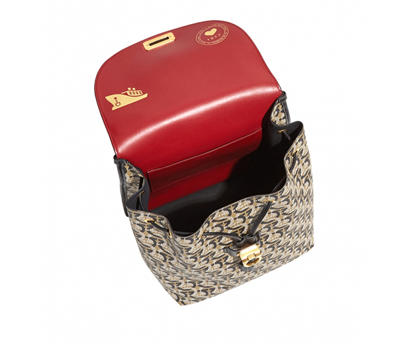 此款背包富有都市时尚风格,既实用又新潮。以涂层帆布材质制成,印有Gancini图案,包口配有双翻盖,包内设有方便实用的无褶口袋。包口抽绳开合,内部空间宽敞,搭配红色皮革衬里,呈现靓丽色彩和高端质感。配有皮革肩带。