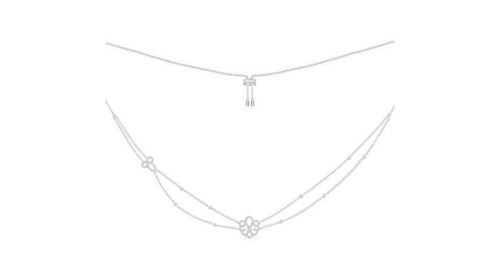 这款项链以纯手工925银制作而成,并微镶白色锆石装饰。