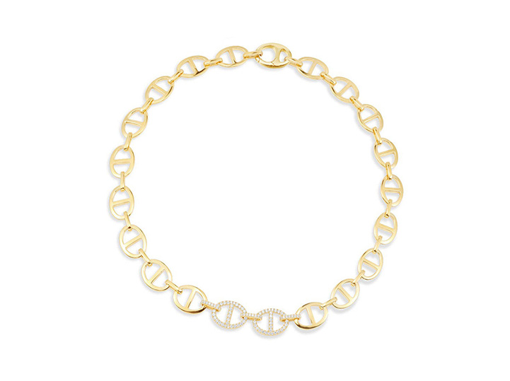 这款水手项链抢眼而具女人味,专为多种风格而设计。融合微镶石粒和金黄色银的环扣,它将为你的造型增添摩登和强烈的女性风韵。
