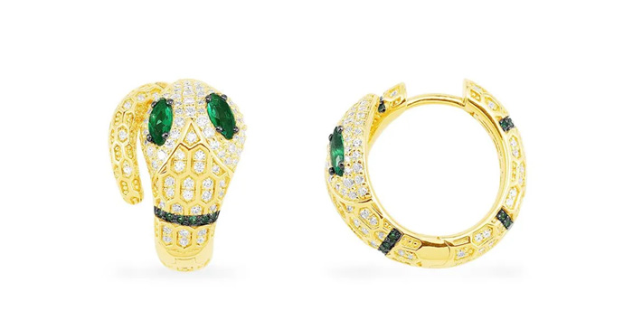 商品编码 | E937212 | 商品名称 | 灵蛇耳环饰绿石 - 金黄色银 |