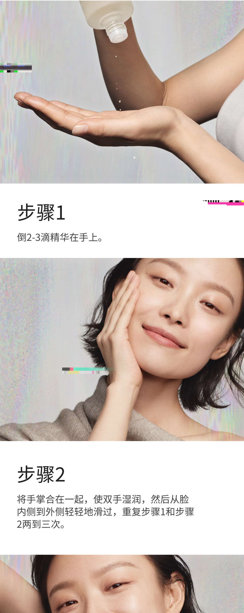1.护肤品成分各有不同,敏感性肌肤的人士请先在耳后进行测试后再使用哦!