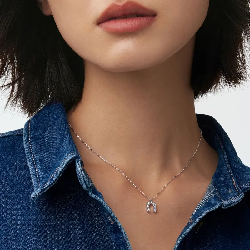 Una Angelic 项链, 圆形切割, 雙面圖案, 白色, 镀铑